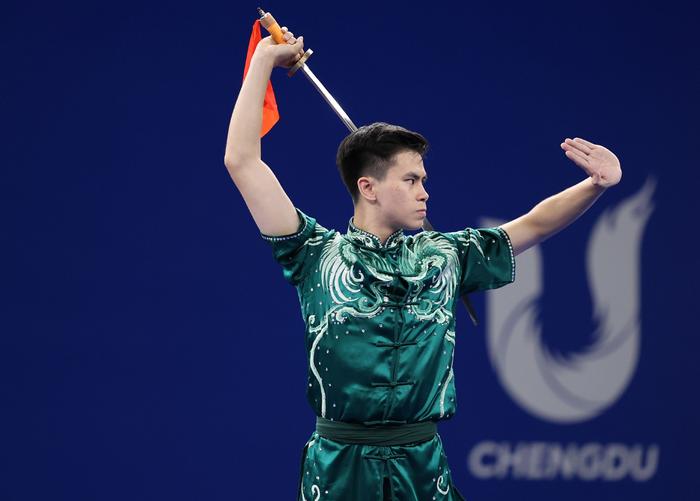 7月30日,印度尼西亚选手玛维洛在男子刀术金牌赛中获得亚军。新华社记者贾浩成摄
