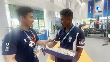 大运会上,超越比赛胜负的感人故事不断上演。在羽毛球比赛中,中国选手谭强看到对手巴西运动员韦尔顿的球鞋已经有些旧了,第一反应是“他不远万里来参赛,我想送他一双鞋,让他感受来自中国的热情。”当谭强把新鞋送到韦尔顿手中,他连声说“谢谢”,与谭强击掌拥抱。