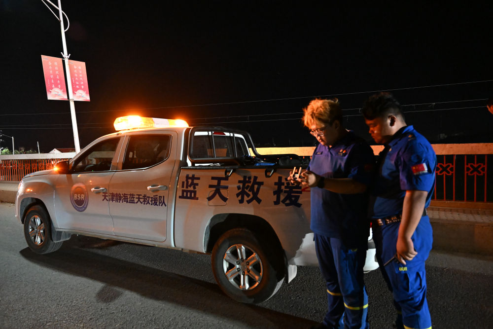 ↑8月4日,天津静海蓝天救援队队员使用热成像无人机确认村内是否还有居民未撤离。
