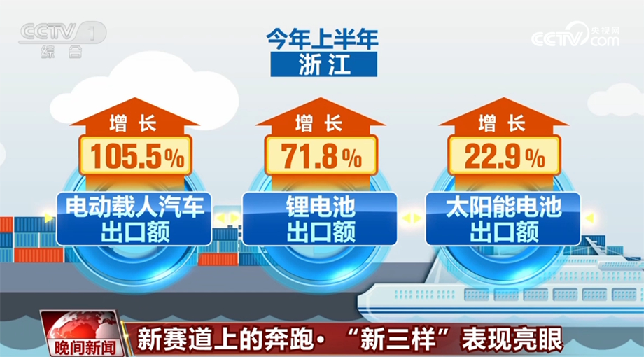 今年上半年,相比于服装、家具、家电“老三样”的出口,电动载人汽车、锂电池、太阳能电池即外贸“新三样”出口表现尤为亮眼。