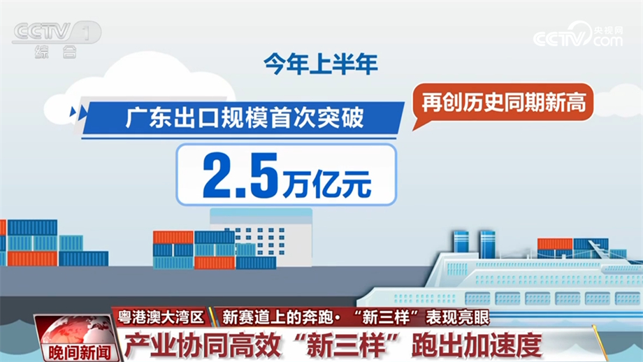 在粤港澳大湾区,“新三样”的带动效果同样明显,今年上半年,广东出口规模首次突破2.5万亿元,再创历史同期新高。其中,电动载人汽车、锂电池、太阳能电池出口分别增长7倍、27.7%、57%。围绕新能源汽车产业,大湾区同时也成为全国锂电产业集聚地。