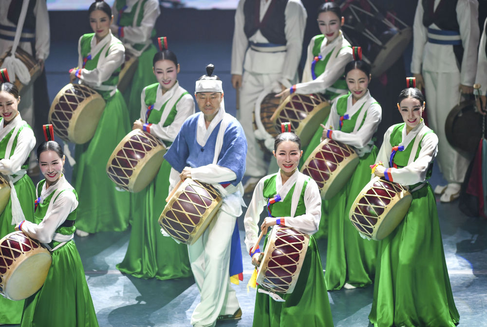 韩国釜山市立舞蹈团演员为观众表演节目《畅享Korea》(7月31日摄)。新华社记者 胡虎虎 摄