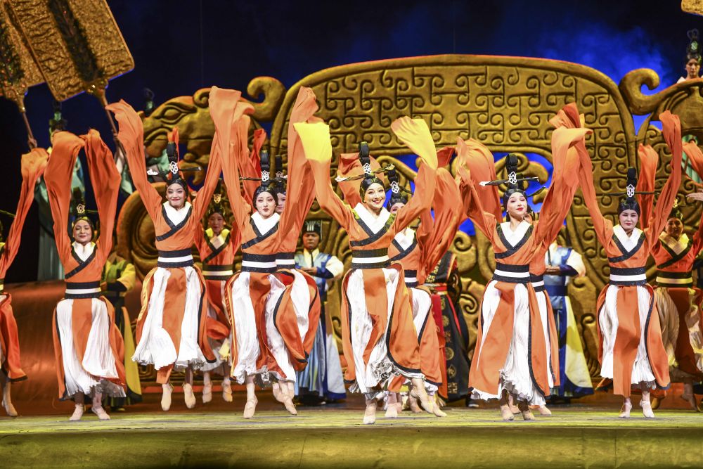 第六届中国新疆国际民族舞蹈节开幕式后,新疆艺术剧院歌舞团演员表演大型原创历史题材舞剧《张骞》(7月20日摄)。新华社记者 胡虎虎 摄