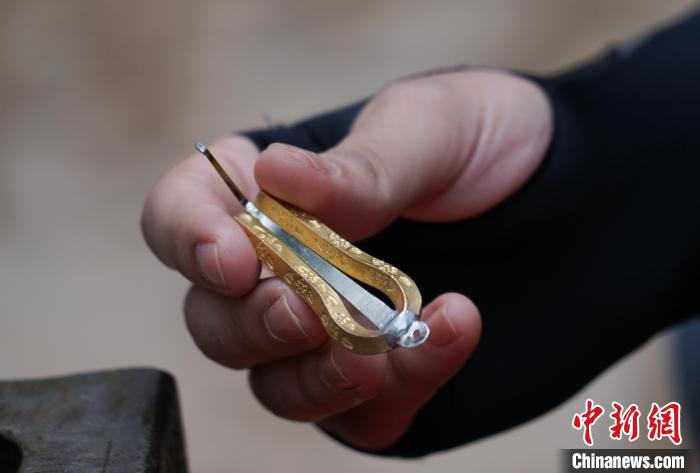 图为伊朗博主普雅展示雕刻有精美花纹的口弦。马铭言 摄