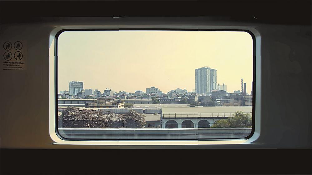 晚上6点,从河内市中心向城外的车流逐渐迎来高峰,道路上方的高架上,河内城市轨道交通吉灵—河东线列车快速通过,成为傍晚时分一道特别的风景线。