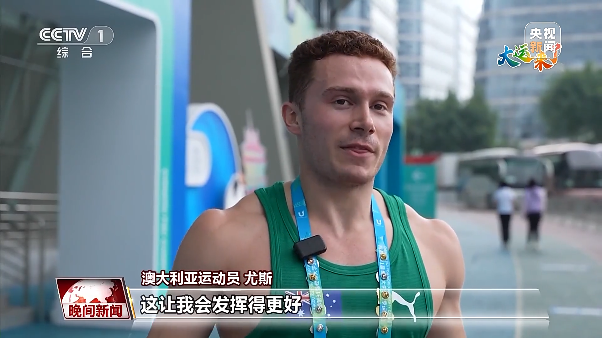 澳大利亚运动员 尤斯:赛场上的氛围太棒了,大家很热情,热血沸腾,当播报你的名字和来自哪里的时候,观众都会欢呼,让我很自豪,这让我会发挥得更好。