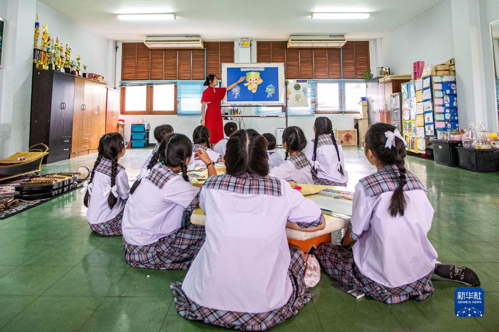 近日,泰国沙没沙空府三才公学组织学生绘画亚运会吉祥物,以此祝福即将到来的杭州亚运会。