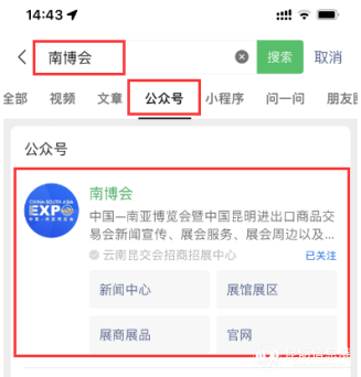 据了解,观众可再微信搜索“南博会”公众号、“中国南亚博览会EXPO”公众号、“云品荟” 公众号找到购票入口,直接购票或可登录南博会官方网站(https://www.csa-expo.com)、南博会官方APP,微信搜索 “南博会”官方小程序、“一部手机云品荟”官方小程序找到购票入口,跳转至相关微信公众号进行购票。
