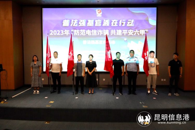 昆明信息港讯 记者龙泉积 8月9日下午,“普法强基官渡在行动”暨2023年“防范电信诈骗共建平安六甲”活动在昆明滇池国际会展中心举行。现场,针对易遭受电信诈骗的职工、居民,营造出了普法强基、全民反诈的活动氛围,进一步提升了辖区职工及居民的反诈意识。