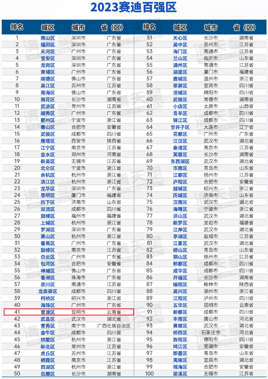 位列41名!2023赛迪百强区重磅发布 官渡区连续6年入榜