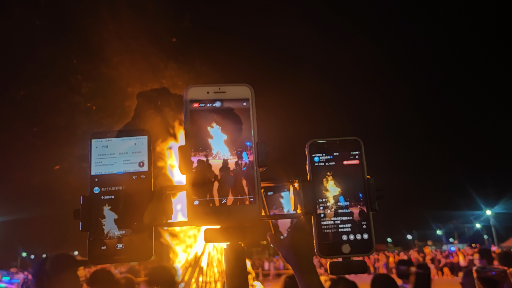 欢呼声、欢笑声、音乐声交织在一起,这是喧嚣的、狂欢的、无忧无虑的夜晚。“这是我第一次过火把节,太激动了。屏幕前的观众朋友们,你们一定要来云南过火把节,感受云南人的热情与狂欢!”山祖高声喊道。