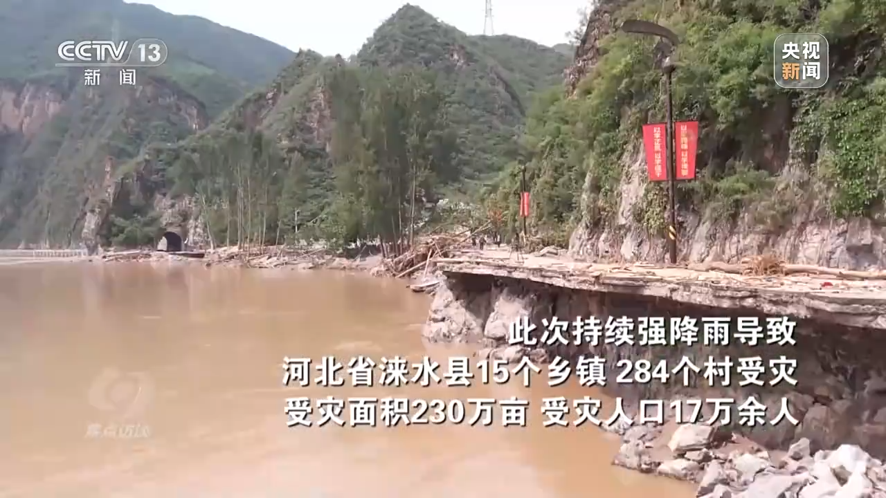 此次持续强降雨导致河北省涞水县15个乡镇、284个村受灾,受灾面积230万亩,受灾人口17万余人。