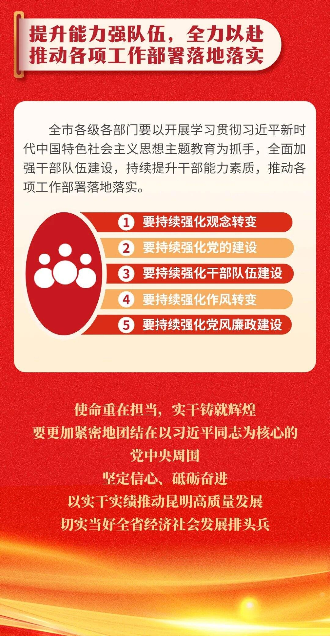 中国共产党昆明市第十二届委员会第五次全体会议,于8月9日至10日举行,省委常委、市委书记刘洪建作工作报告,总结上半年工作,分析当前形势,安排下步任务,动员全市上下坚定信心、攻坚克难,奋力完成全年各项目标任务,推动昆明高质量发展取得新突破。