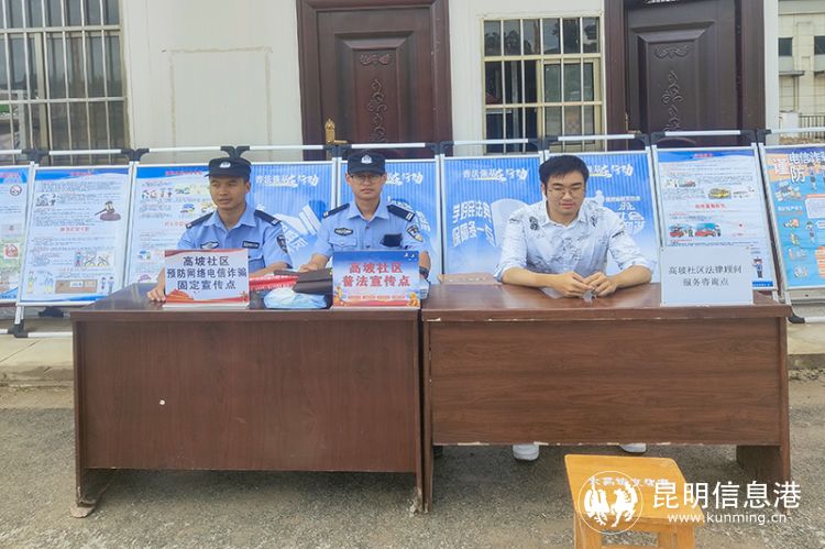 昆明信息港讯 记者曹月 8月9日到10日,在火把节到来之际,高坡社区党总支、居委会巧借传统节日契机,通过设置普法宣传区、拉普法横幅、发放宣传手册等形式,向广大辖区居民宣传尊法学法守法用法。