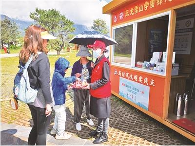 玉龙雪山景区周到服务引领暑期文明旅游。 (本报记者 李映芳 摄)