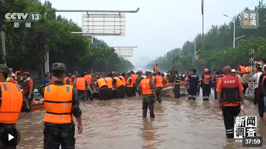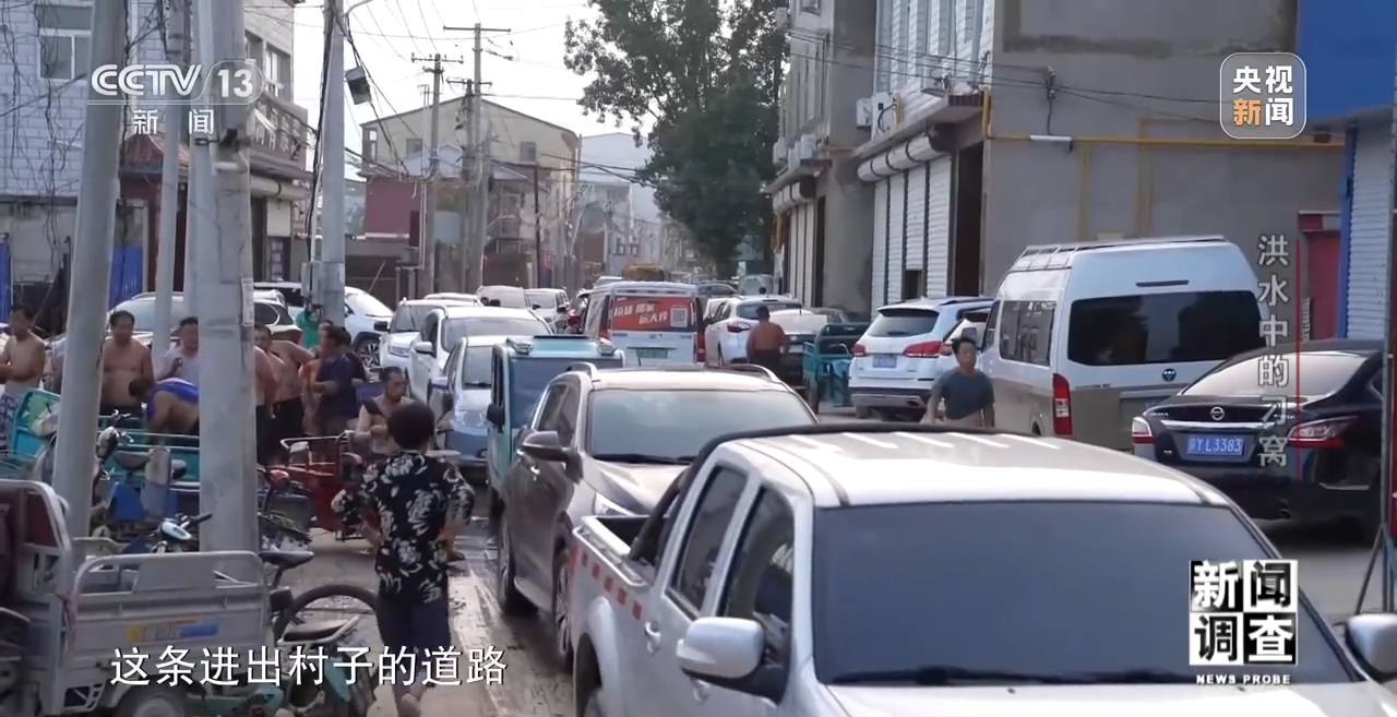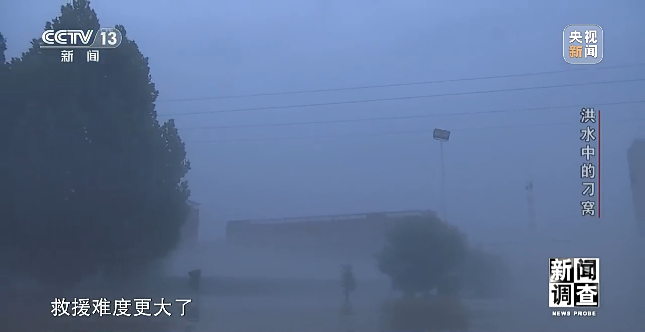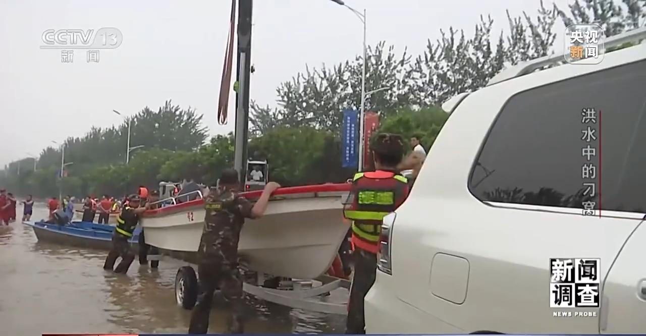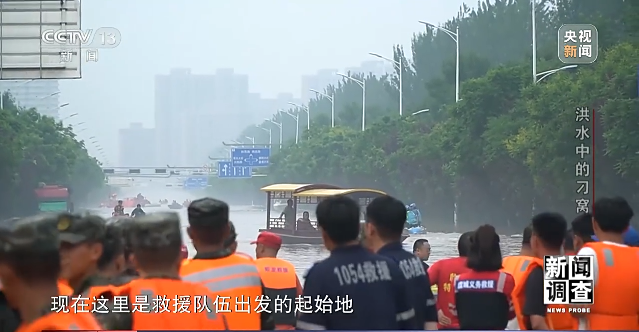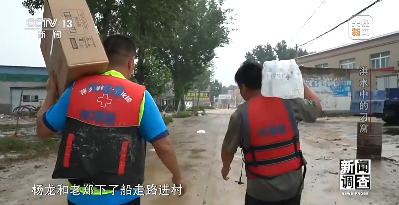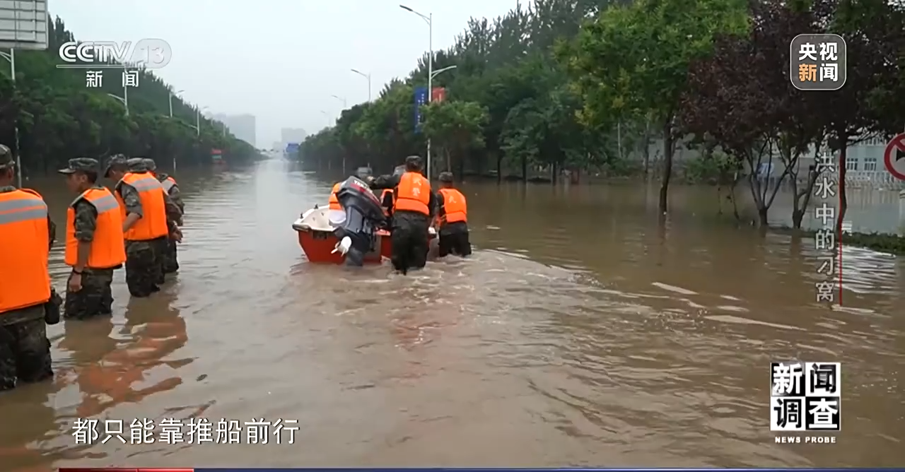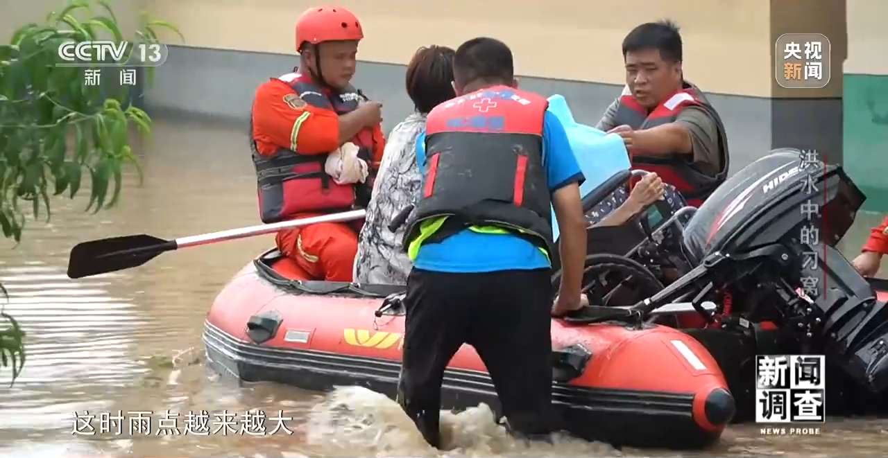 向里走了三四百米,又遇到低洼处,一米多深的水拦住他们,幸好遇上正在村里转运群众的河南临颍县中青救援大队的一艘救生船。