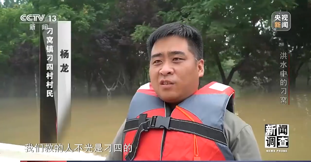 刁窝镇刁四村村民 杨龙:刁一刁二刁三刁四,属于四个村,我们救的人不光是刁四的,所有刁一刁二刁三,只要看见人,需要救的,我们都一块儿救出来。