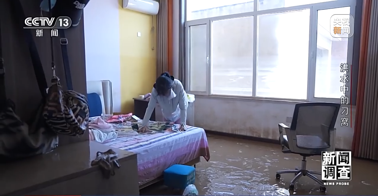 张晓丽家的前院地势更低,地面还有积水,村里的水电气还都没有恢复,房屋被泡,家里不能久留,更无法过夜。张晓丽两口子只能回城里继续借住在亲戚家中。