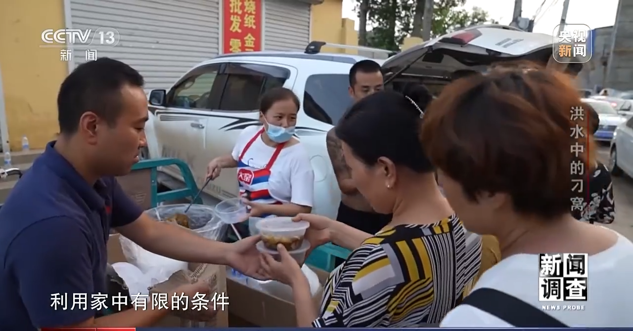 几个居住在村外的村民利用家中有限的条件,来到村口为老人和孩子提供热饭热菜。