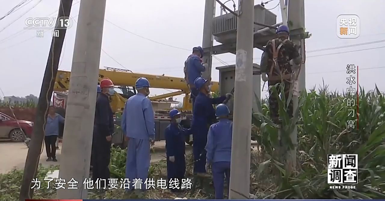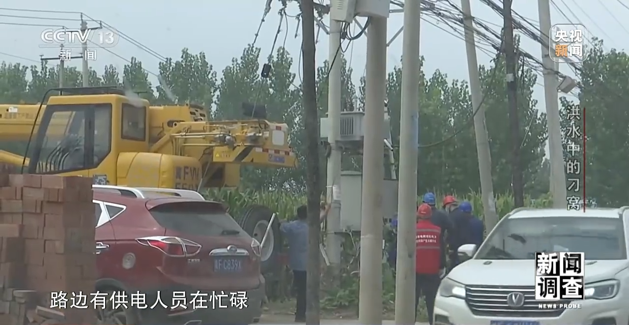 这次洪灾造成涿州大部分地区停电,抢修工作异常繁重。工作人员告诉我们,为了安全,他们要沿着供电线路一条一条地进行排查检修,完成一条就恢复一片区域供电。