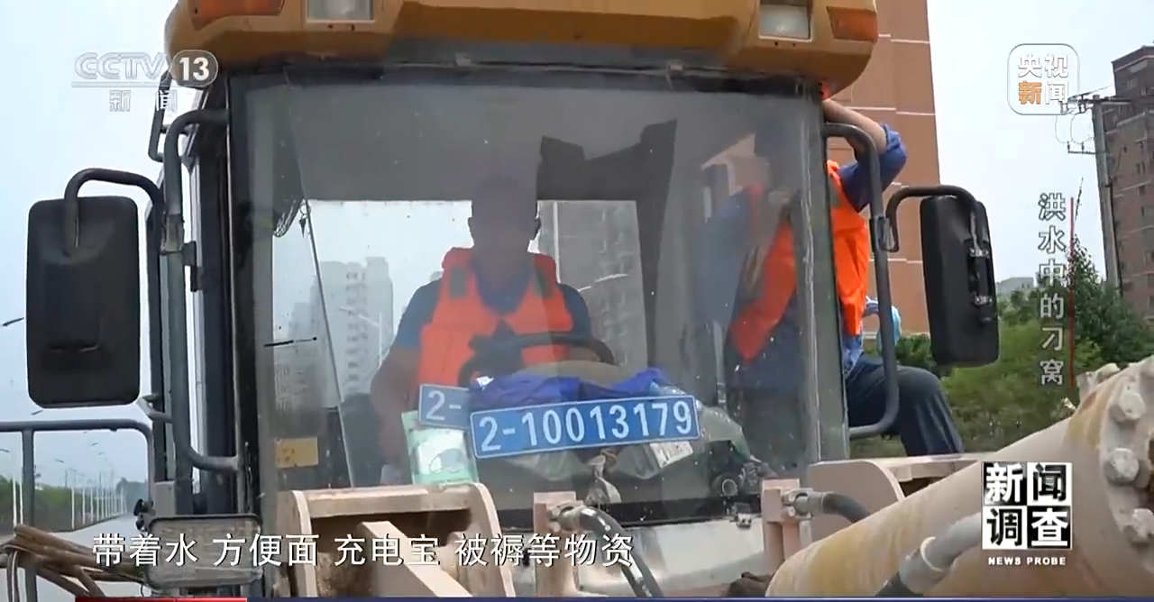 临颍的救生船比较小,老太太和保姆上了船,就没有我们的座位了。这时,雨点越来越大,水面肉眼可见地开始上涨,幸亏路过一辆救援铲车把我们带了上去。