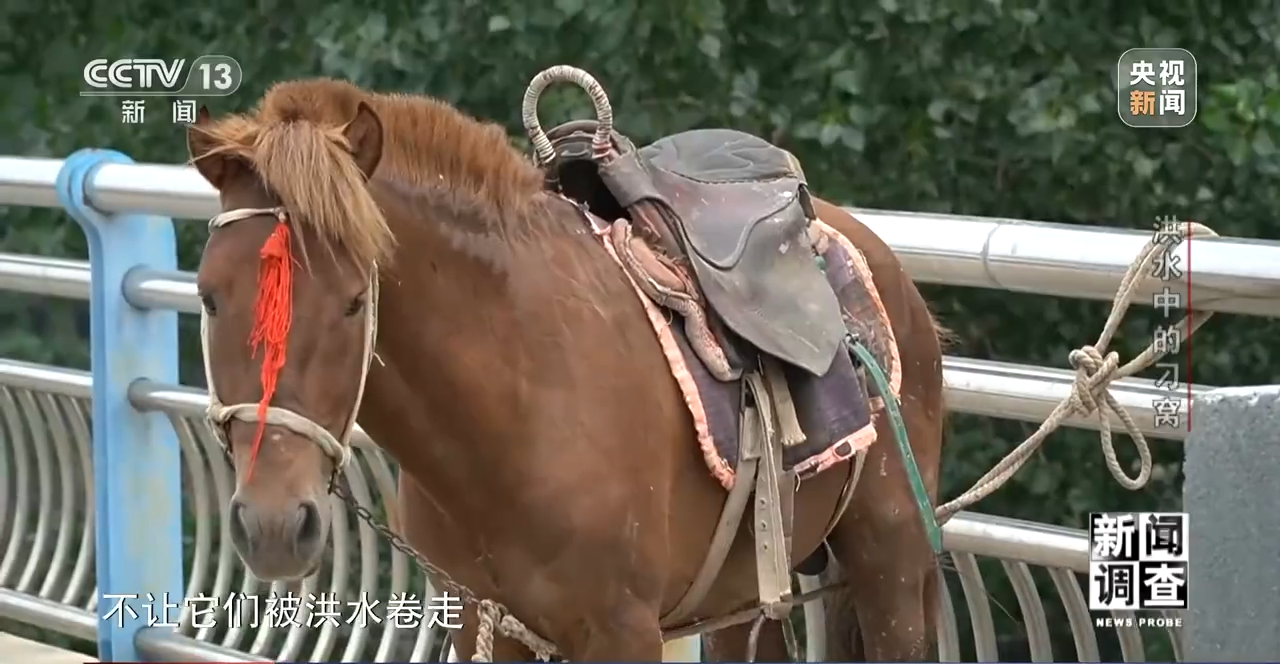 北拒马河的水已经下降了很多,露出了堤坝,高青云说,河边的几匹小马还有远处的羊,还有猪,都是他的伙伴,留在这些伙伴身边,能拉住一个就拉一个,不让它们被洪水卷走。
