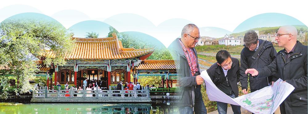 位于苏黎世、以昆明翠湖公园为原型的 “中国园”。 2011年10月,瑞士苏黎世专家现场调研昆明美丽乡村规划建设。