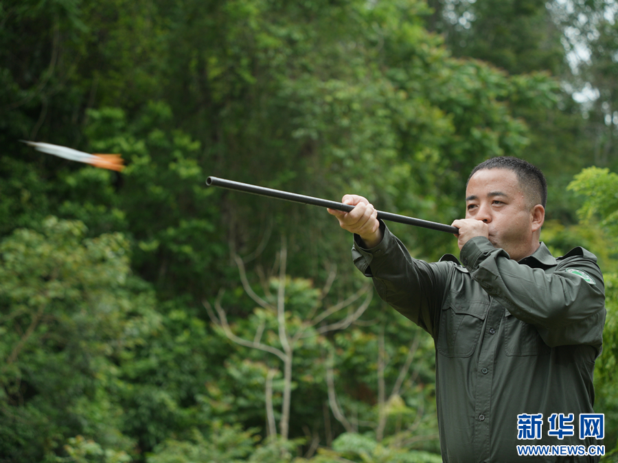 保明伟练习麻醉吹管。6月9日摄 新华网 郭云森/摄