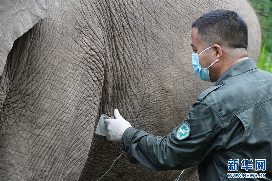 保明伟为怀孕母象检查。6月11日摄 新华网 柴静/摄