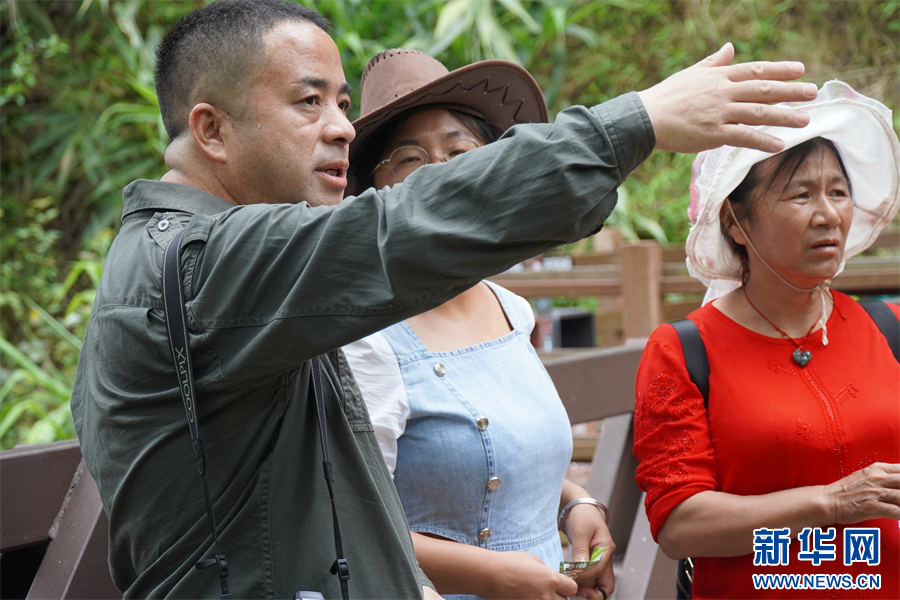保明伟向游客科普亚洲象知识。6月8日摄 新华网 柴静/摄