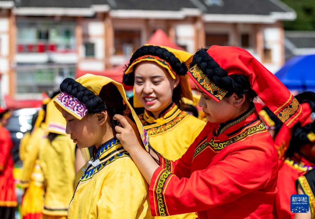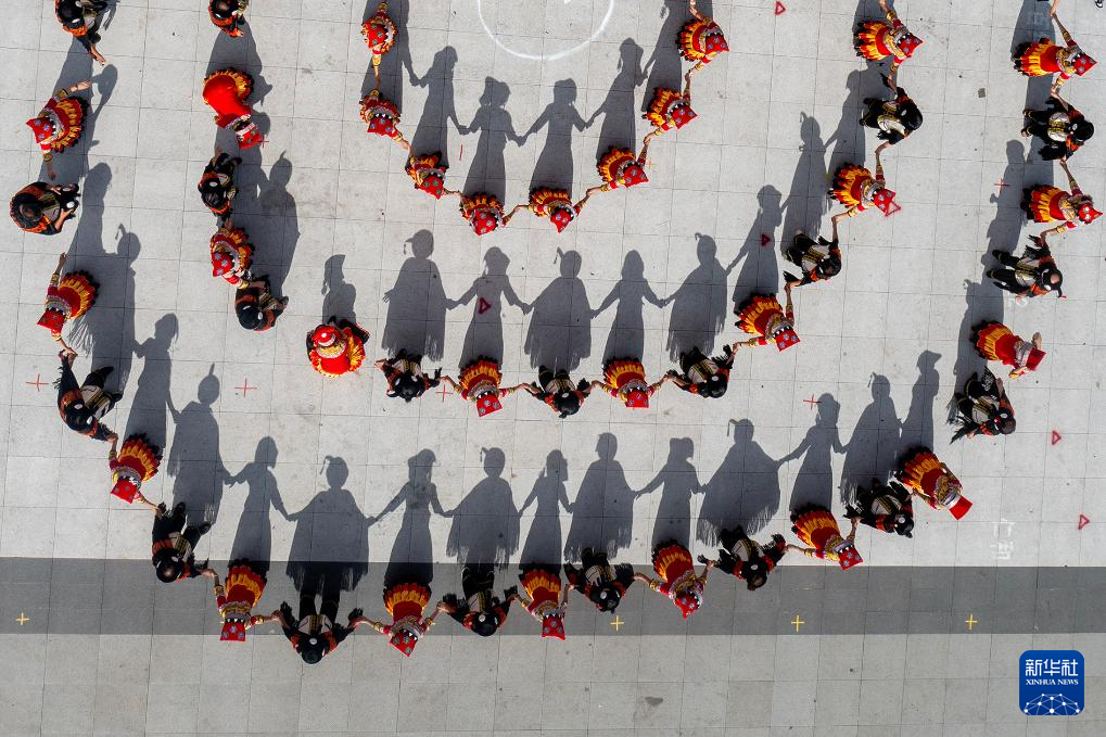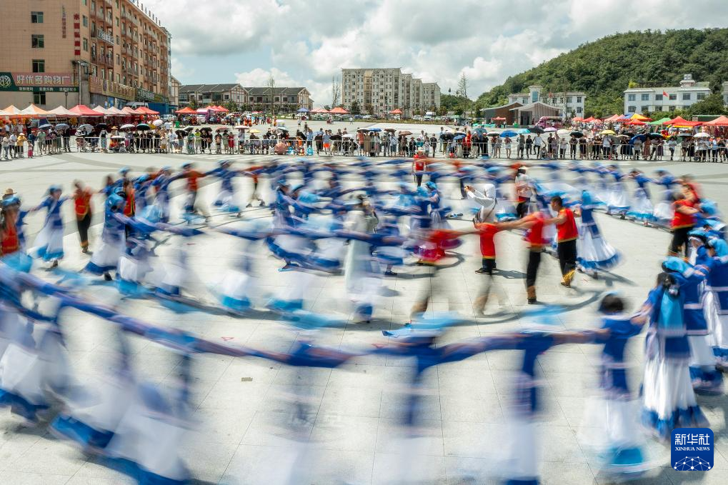 8月10日,群众在贵州省毕节市百里杜鹃管理区鹏程街道进行“乌蒙欢歌”广场舞比赛(无人机照片)。连日来,贵州省毕节市百里杜鹃管理区开展各具特色的文旅活动,丰富游客出游体验。新华社发(范晖摄)