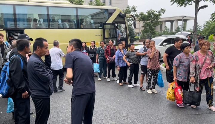 “不着急,慢点儿下,咱这儿有住的、有吃的。”来自五常市民乐乡的群众陆续走下大巴车,已有工作人员等在车前。