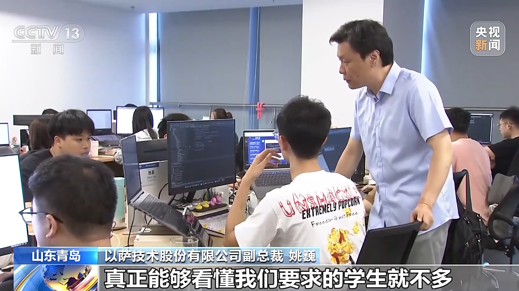 以萨技术股份有限公司副总裁 姚巍:我们去学校宣讲、去开招聘会,真正能够看懂我们要求的学生就不多,所投简历也不多,留下来的我们一看确实也不太合适,专业不符,招人确实很难。
