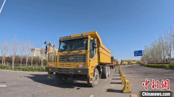 霍尔果斯公路口岸等待出境的工程车辆。李明摄