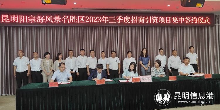 当天,还举行了昆明阳宗海风景名胜区2023年三季度招商引资项目集中签约仪式。此次集中签约的14个项目(13个签订合作协议,1个项目签订框架协议),协议总投资83.46亿元,涵盖文化旅游、绿色能源、装备制造、乡村振兴、现代物流等领域。
