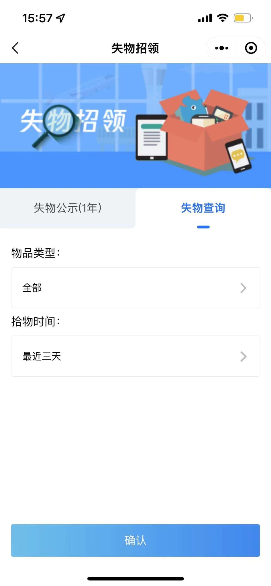 如果您觉得看公示太麻烦,也可以进入“失物查询”界面直接查询有没有自己遗失的物品;