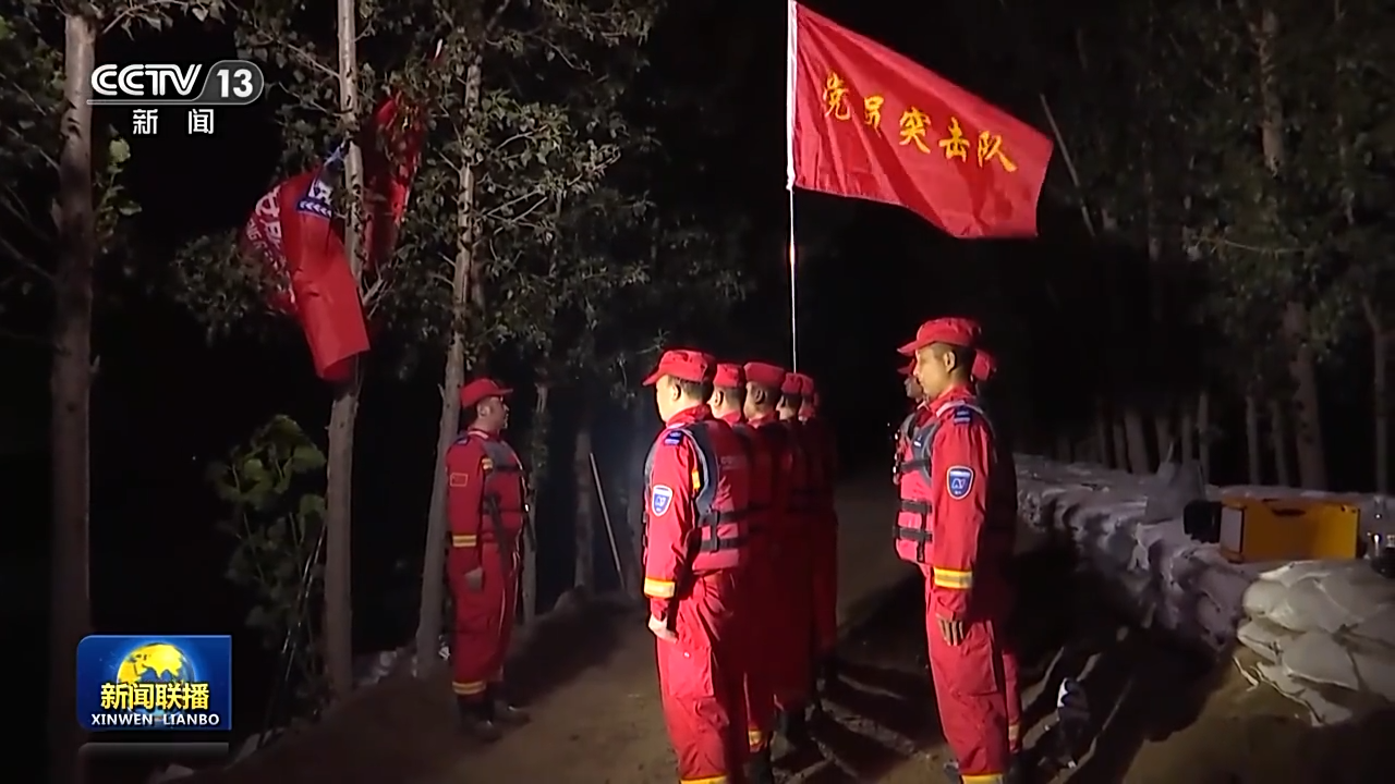 夜幕逐渐降临,能见度越来越低,安能抢险救援队75名党员组成的专业巡查突击队,每3人一组分布在近17公里的堤防一线,队员们24小时3班轮流值守,同时他们还要对当地的巡护人员进行专业指导。