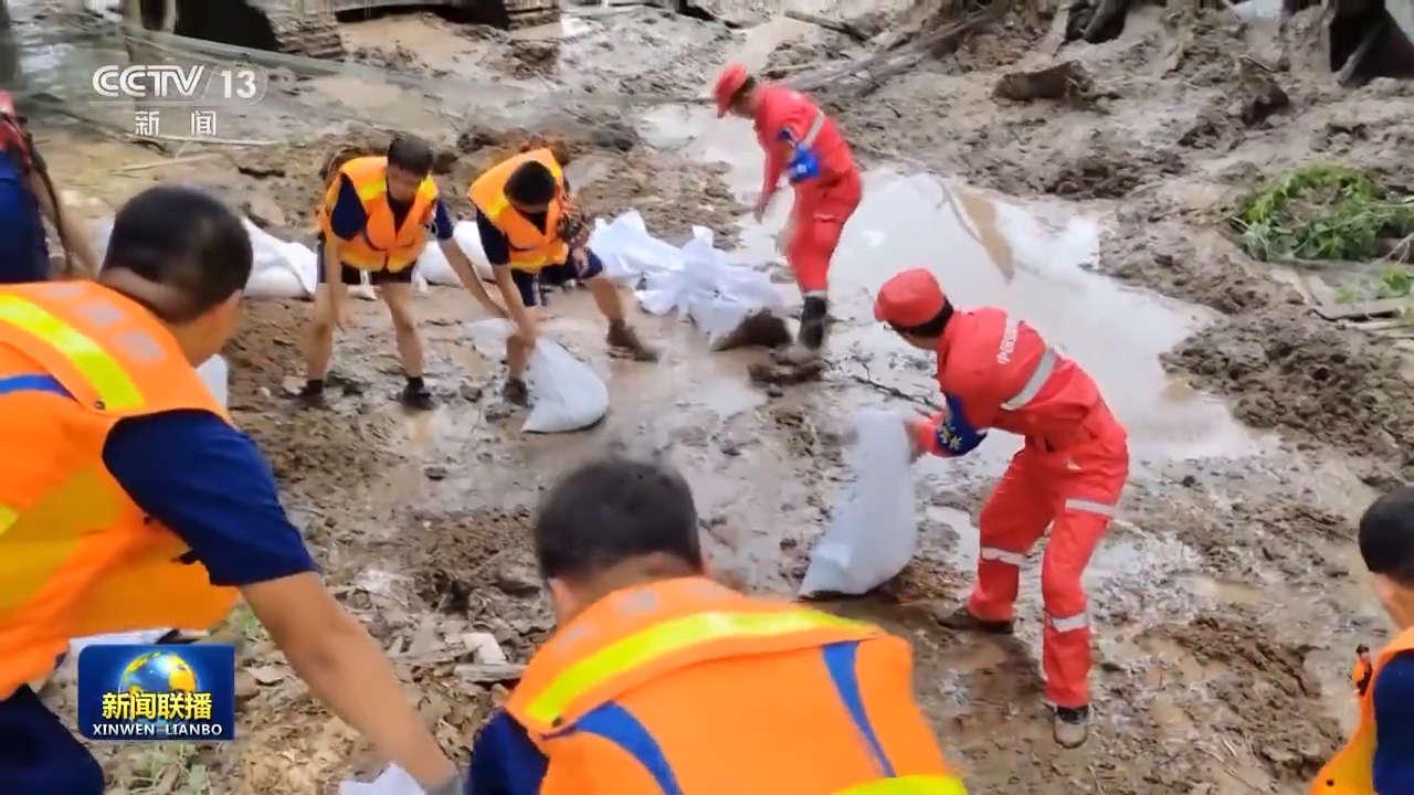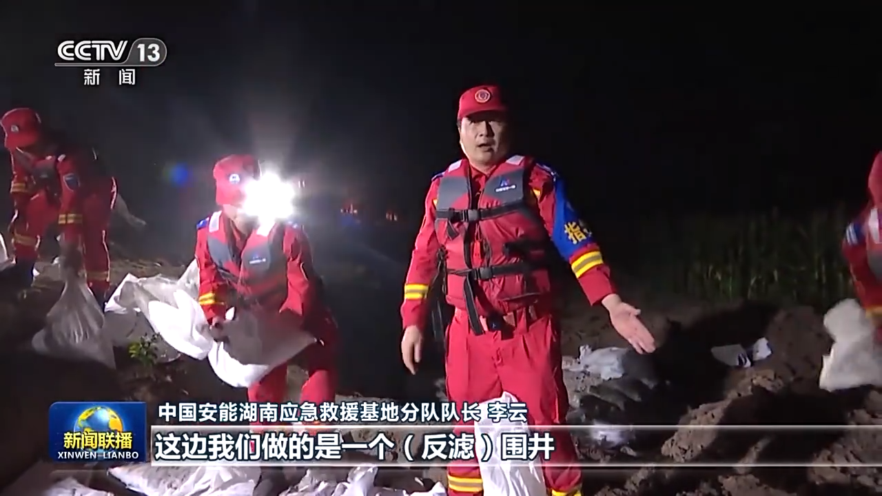 中国安能湖南应急救援基地分队队长 李云:这边我们做的是一个反滤围井,在里面已经铺设了细沙,现在我们进行铺设中石,防止泥土进一步流失。