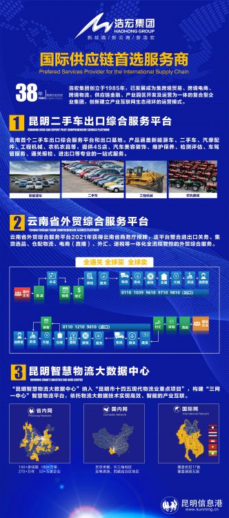据了解,“一中心两平台”数字化供应链服务平台由昆明智慧物流大数据中心、云南省外贸综合服务平台以及昆明市二手车出口试点综合服务平台组成,以创新外贸新业态模式、坚持自贸区深化改革开放,持续助力昆明国际区域性中心城市建设。