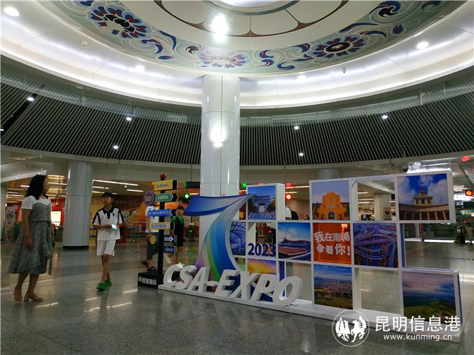 昆明信息港讯 记者江枫 8月16日,第7届中国-南亚博览会盛大开幕,南博会黄公东街、东风广场地铁站打卡点也同步亮相,打卡点用图片展板形式,汇聚了云南陆军讲武堂、云南美术馆、长水机场和公园1903等昆明地标,吸引市民、游客拍照打卡。