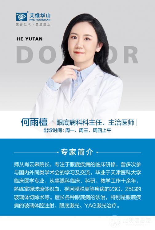 昆明艾维眼科医院眼底病科主任何雨檀在“深度专诊日”为患者看诊