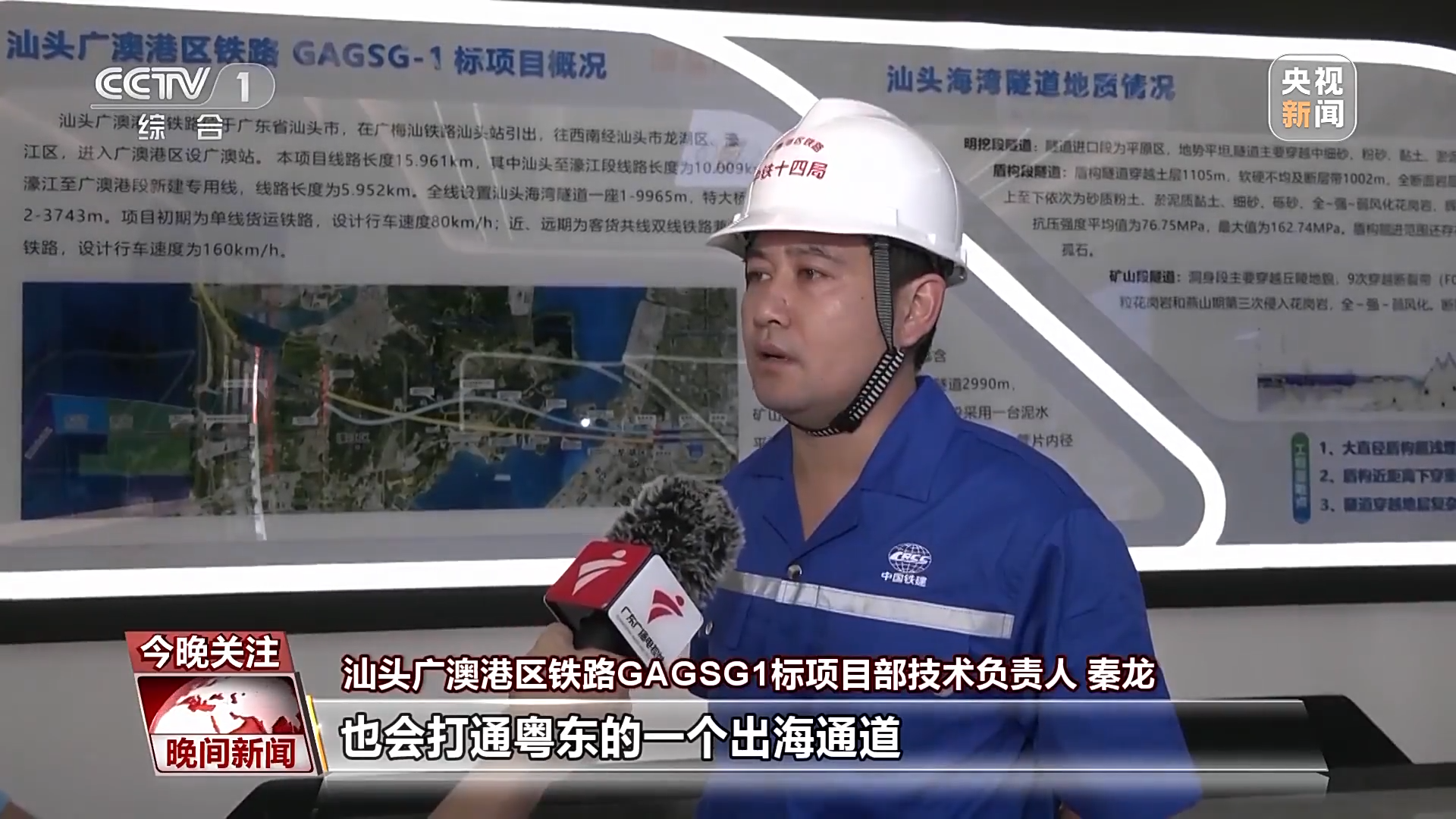 汕头广澳港区铁路GAGSG1标项目部技术负责人 秦龙:汕头广澳港区铁路建成之后,将打通汕头站的一个出海通道,另外也会打通粤东的出海通道,是粤东城际网的一个重要组成部分。