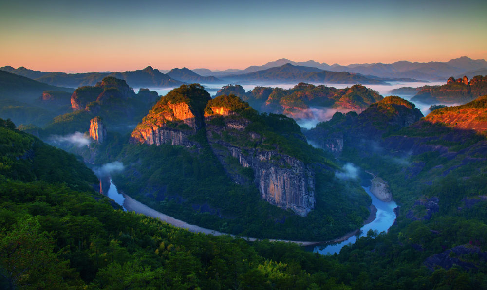 武夷山国家公园地跨福建、江西两省,总面积1280平方公里。武夷山高差大,植被类型丰富,垂直分布明显,具有中亚热带原生性常绿阔叶林典型生态系统,两栖和爬行类动物资源丰富。武夷山国家公园以九曲溪、丹霞地貌、武夷大峡谷等为代表的独特自然景观,奇险秀美、气势磅礴。