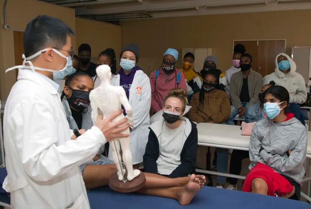 胡紫景在南非约翰内斯堡大学上针灸课。(受访者供图)