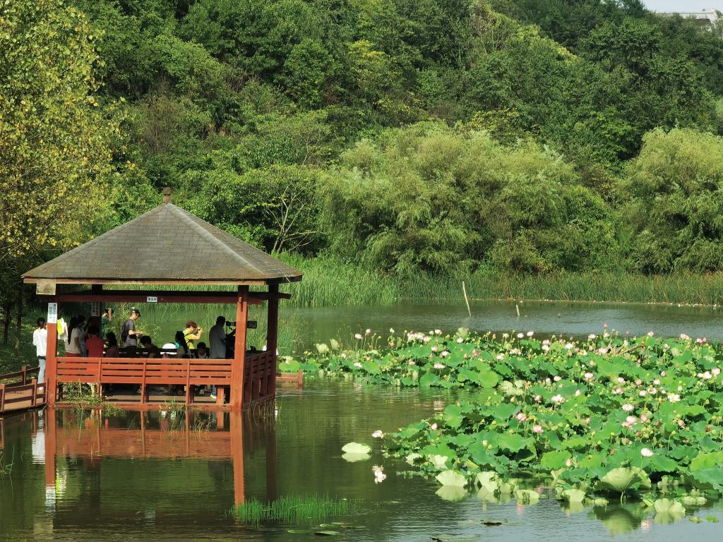 湖面清澈宽阔,荷花竞相绽放,白鹭恣意欢鸣……在占地约5千亩的观山湖公园内,每逢周末节假日游人如织。一踏进园区,就能感受到闲适惬意,热爱健身的市民将这里视为天然的锻炼场所。