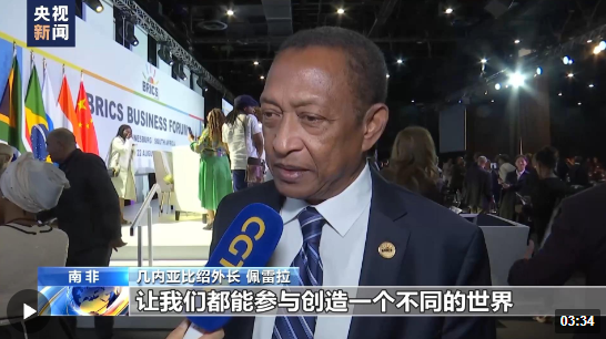 几内亚比绍外长 佩雷拉:我非常认同习近平主席在金砖国家工商论坛闭幕式发表的致辞,他的致辞令我们非常鼓舞,让我们都能参与创造一个不同的世界。