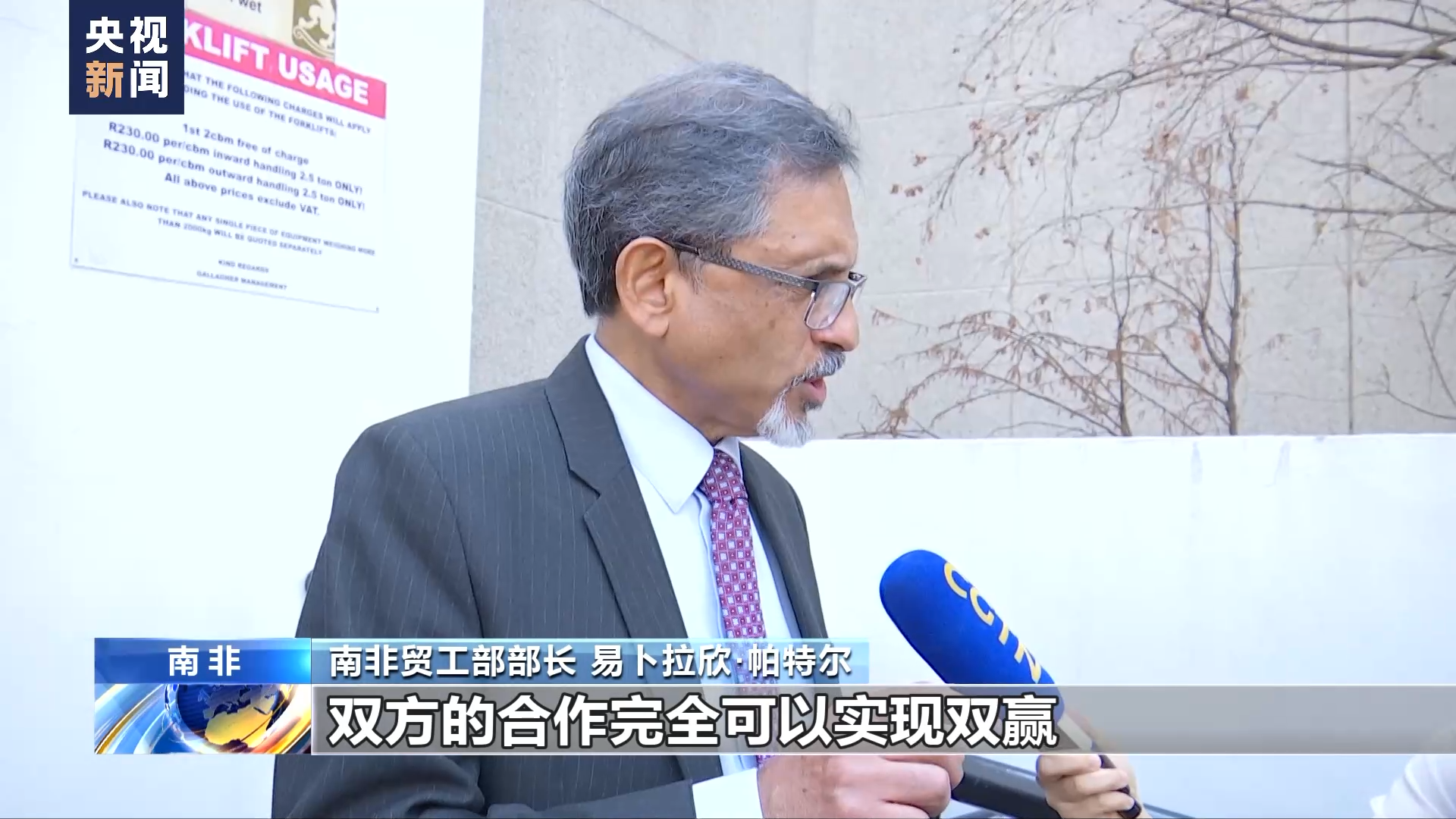 南非贸工部部长 易卜拉欣·帕特尔:中南两国领导人重点谈及了中国与非洲的关系,中非双方都能从双边合作关系中受益。非洲有巨大的资源优势,中国拥有技术和资金,双方的合作完全可以实现双赢。这也是为什么习近平主席和南非总统拉马福萨希望通过对话来加强合作,中国非常重视非洲的巨大潜力,也把非洲当成真正的朋友。