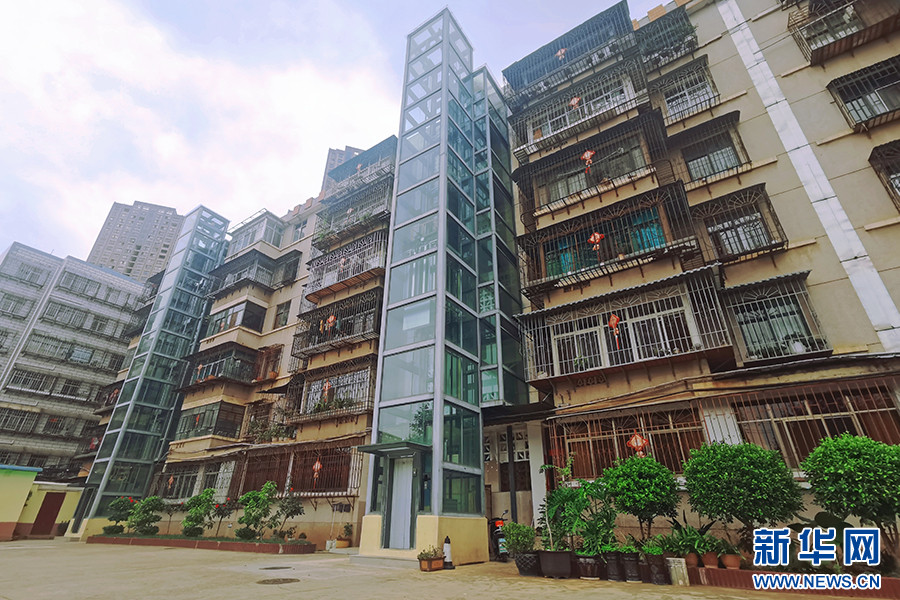关岭路89号院经过改造,5个单元已经装上电梯(7月13日摄)。新华网发(甘露 摄)。