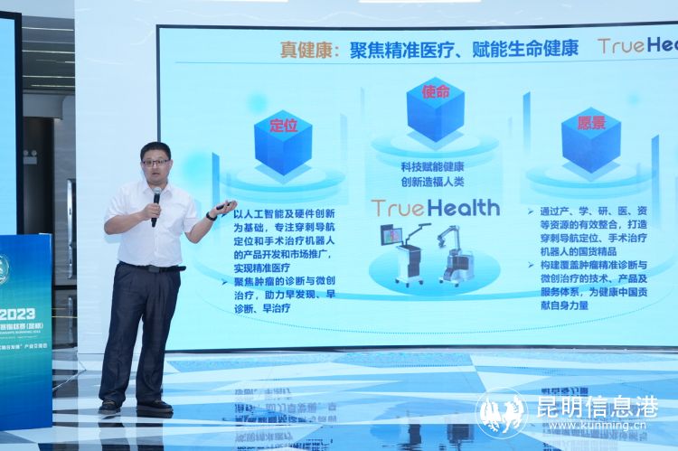 “云南的市场非常大,希望能有机会到盘龙成立分公司,实现产业布局和落地。”真健康(广东横琴)医疗健康有限公司董事长助理谢晓飞在《医疗机器人领先企业真健康的经验分享》中介绍了真健康(广东横琴)医疗健康有限公司在医疗机器人方面的探索和应用。