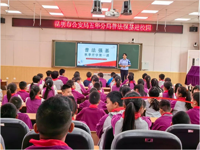 适逢开学季,为进一步加强法治宣传教育工作,提高师生的法治意识,切实提升校园安全防范水平,昆明五华警方结合“普法强基补短板”专项行动,组织警力到辖区各所学校广泛开展法治教育宣讲活动。